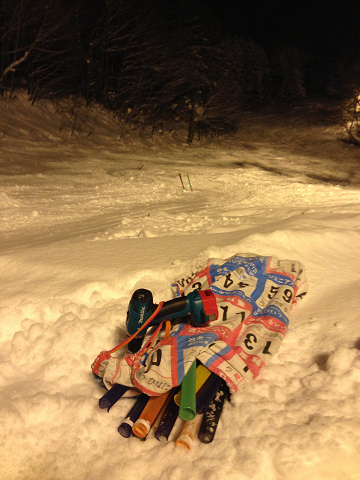 ナイターでショートポールを設置。