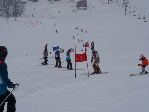 早朝ばんけいで行われた山岳スキーレースを終え、三笠市の桂沢スキー場へ移動