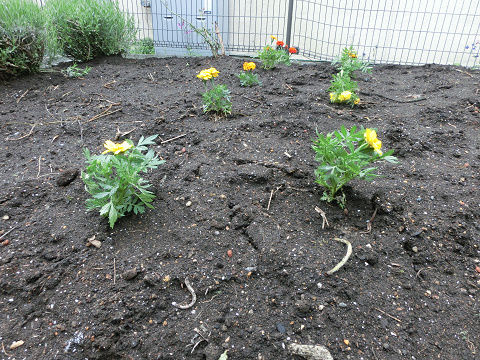 マリーゴールドを植えて、花の種もまいてみました