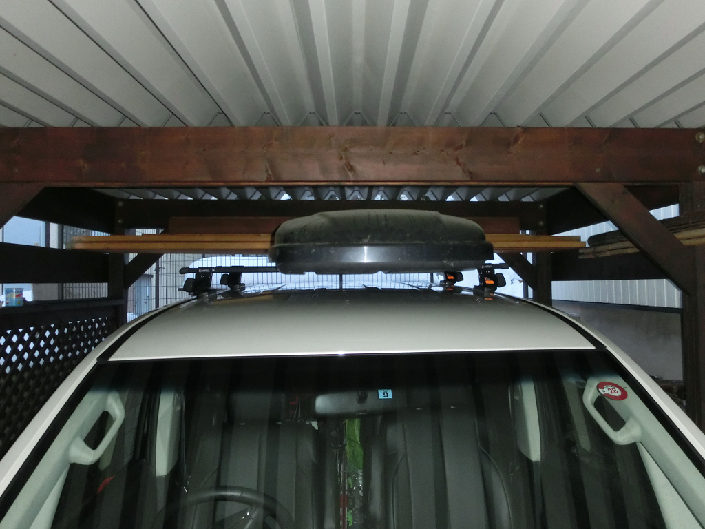 vehicle INNO キャリアとルーフボックス デリカD5用のキャリア(INSU-K5+K346+INB137)を「ポチ」ルーフモールをめくり取り付けポイントを利用して固定しますルーフボックスを収納する棚は車庫の後方へ移動車庫の高さをクリアできまし... 2016.01.02 vehicle