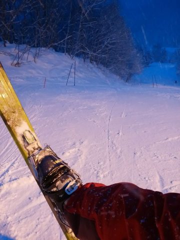 降雪のばんけい School 2017.01.28 早朝から照明が灯っているハーフパイプは出来たのかな スラバンはモフモフ 一般レッスン終了後、ジュニテクナイターのポール練習にテレで遊ばせてもらいました ポールのトレーニングは楽しい!