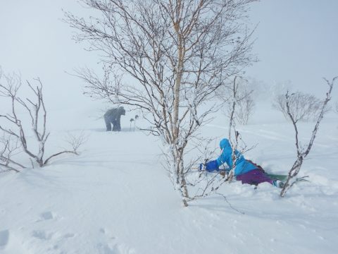 標高が上がるにつれ、風が強くなりトレースがすぐに埋まってしまいます
