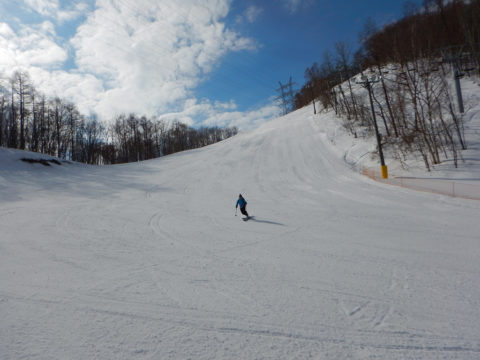 表面が締まった滑りやすいバーンですが今日は気温が上がりそうです