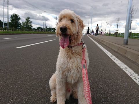 ロンを連れて近くの沿道までマラソンの応援