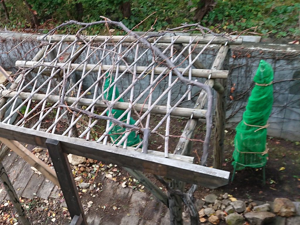 冬囲いとぶどうの剪定を終えたら日が落ちてきました