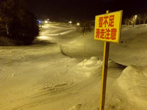 Ski雪不足の為、日中はセンターリフトからの2コースとハーフパイプのみオープン。ナイターはセンターリフトが運行しています。