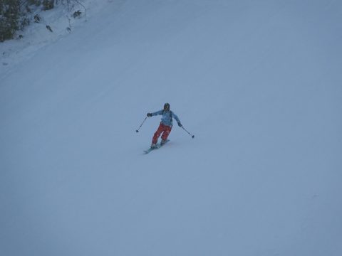 08:07 待ちわびていた、圧雪の入ったスラロームバーン。