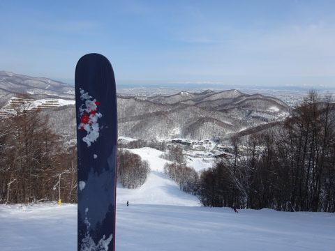 遠くの山々までクッキリ見える晴天。降雪後にきれいに圧接がかかり、フラットなバーン。