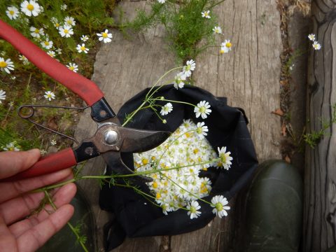 せっかくだからハーブティーにしてみよう!と収穫を始めたけれど、花だけ摘み取る地味~な作業にお疲れ気味。