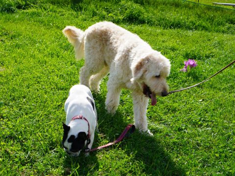 スキー場にクロッカスが咲いていたのに、相変わらず撮影に協力してくれないWans達です。