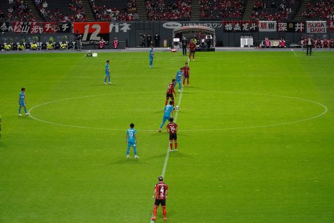 右サイドの9金子からのグラウンダーのセンターリングを2人がスルー。サガンは完全に揺さぶられ、左サイドへ詰めた4菅のシュート。VARで9金子がオフサイド判定となり幻のゴールとなったけど、出来てんじゃん。得点パターン。