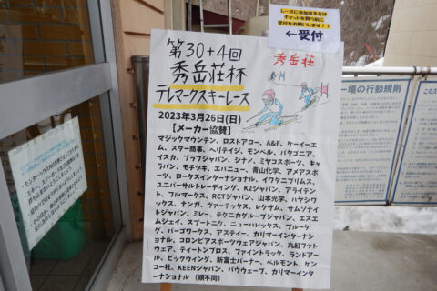 お休みしていた秀岳荘杯が再開しました。秀岳荘、役員の皆さま、桂沢スキー場、三笠スキー連盟他関係者の皆さまに感謝します。