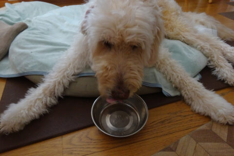 Dogsふやかして練り物状にしたゴハンは食が進まない様子。体調も良さそうなので、カリカリのまま与えててみたら凄まじい勢いでガツガツと食べてしまった。