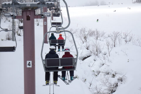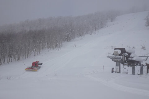 第2リフトから上部のコースはウインチ付けた圧雪車がコース整備中
