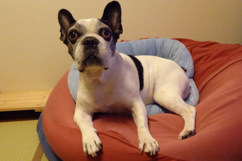 クッションに埋もれたドヤ顔のニコ