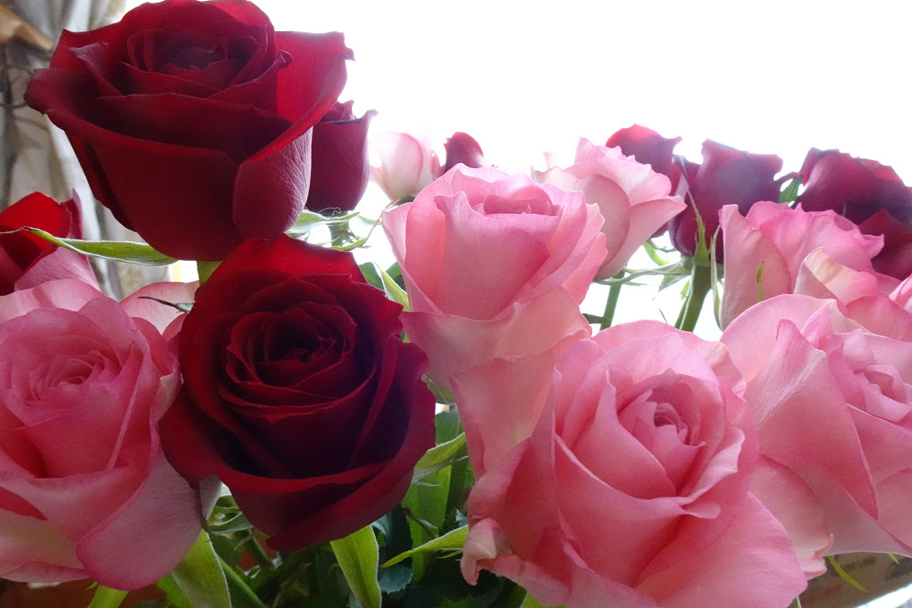 今年の花束は赤とピンク