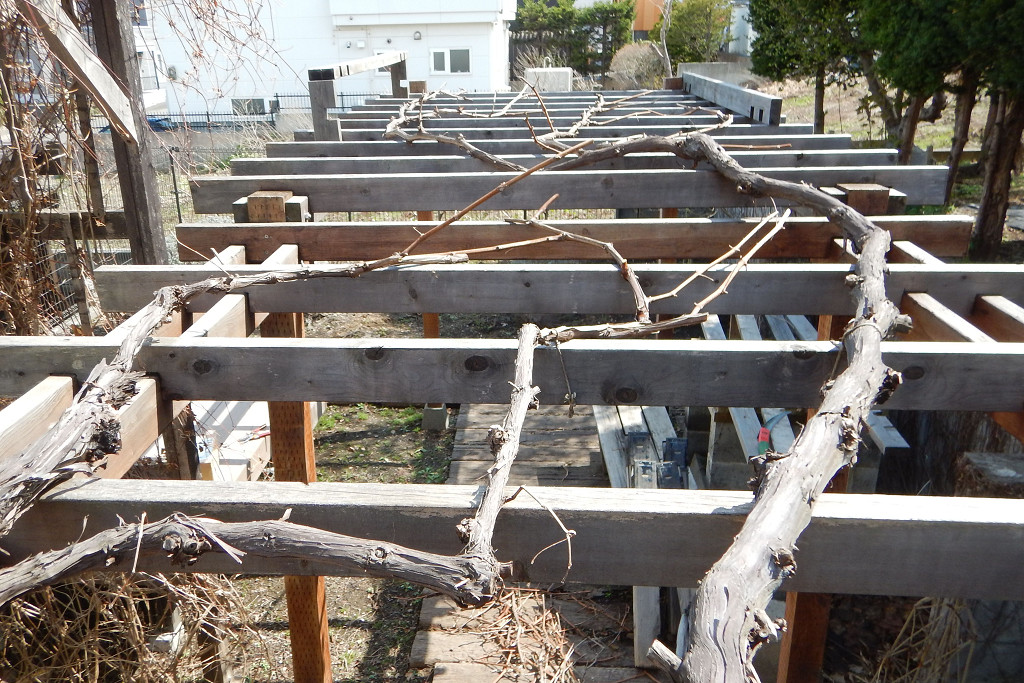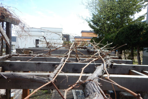 秋に済ましておく作業なんだろうけど、ぶどうの小枝が密な気がするので剪定することにしました