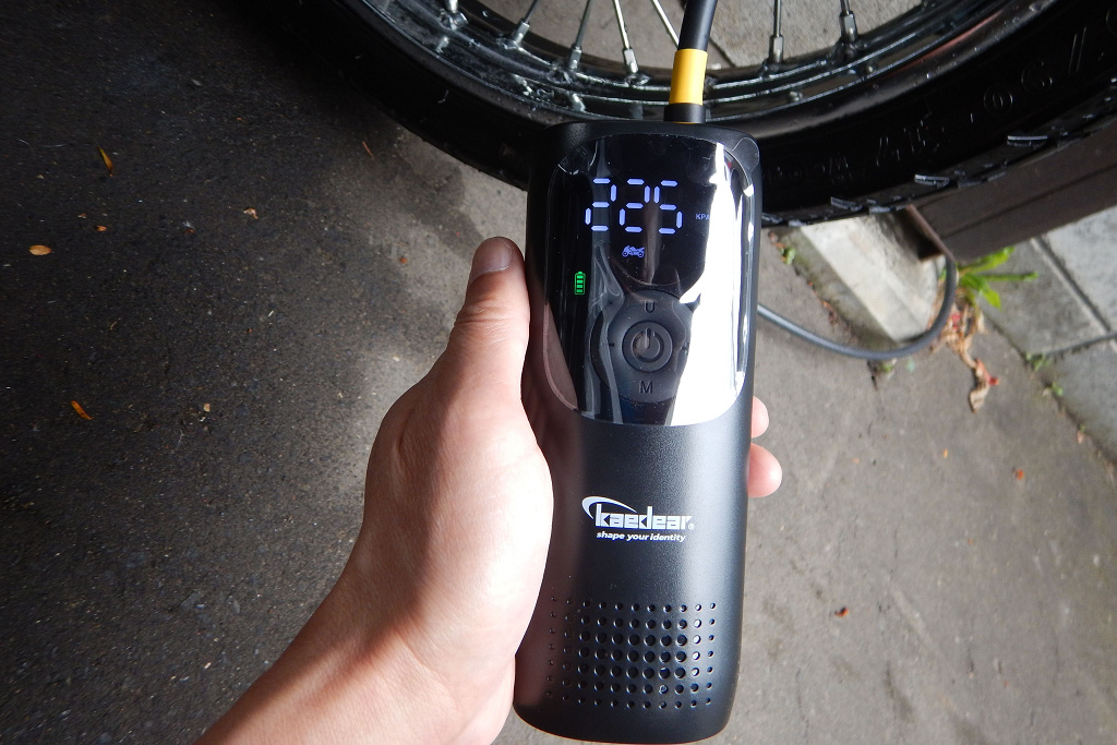 アナログのエアゲージと自転車のフロアポンプを使っているけど電動空気入れをポチッとしてみた