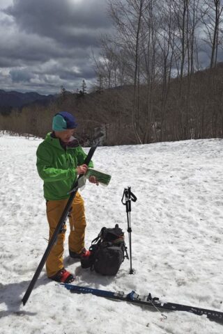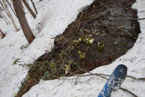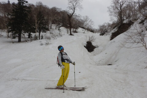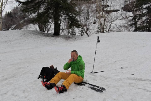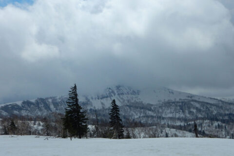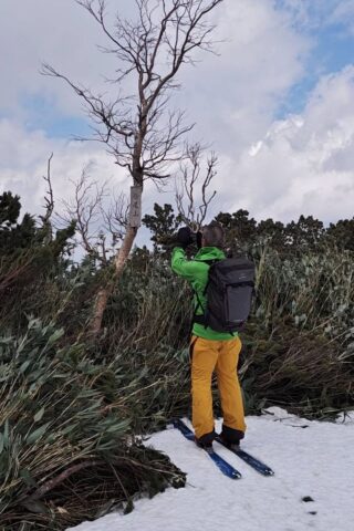 無意根山頂は雲の中、風も強いので長尾山まで移動してシュートを落としましょう