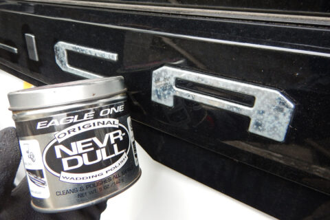 元は鏡面メッキでピカピカのロゴステッカー、融雪剤のダメージを落とせるでしょうか