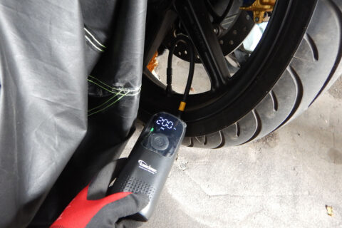 車のついでにバイクの空気圧も確認、電動空気入れ大活躍!
