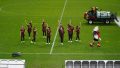 芽が出てから雑草に囲まれていた生育不良のマリーゴールド