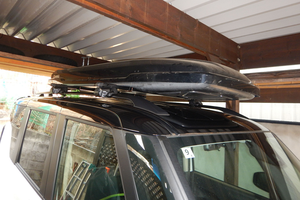 車庫の隙間に押し込んでいたルーフボックスをデリカミニに積載