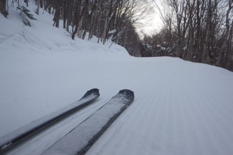 自宅はわさわさ雪が降っていたけれど、スキー場は前日からのハードな斜面に薄っすら積もった程度の降雪