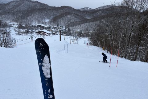 School自宅はわさわさ雪が降っていたけれど、スキー場は前日からのハードな斜面に薄っすら積もった程度の降雪
