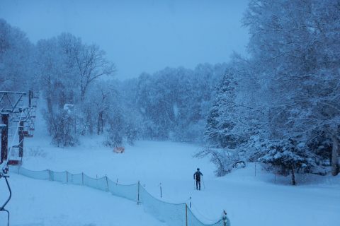 水分を多く含んだ大粒の雪がワサワサ降っています
