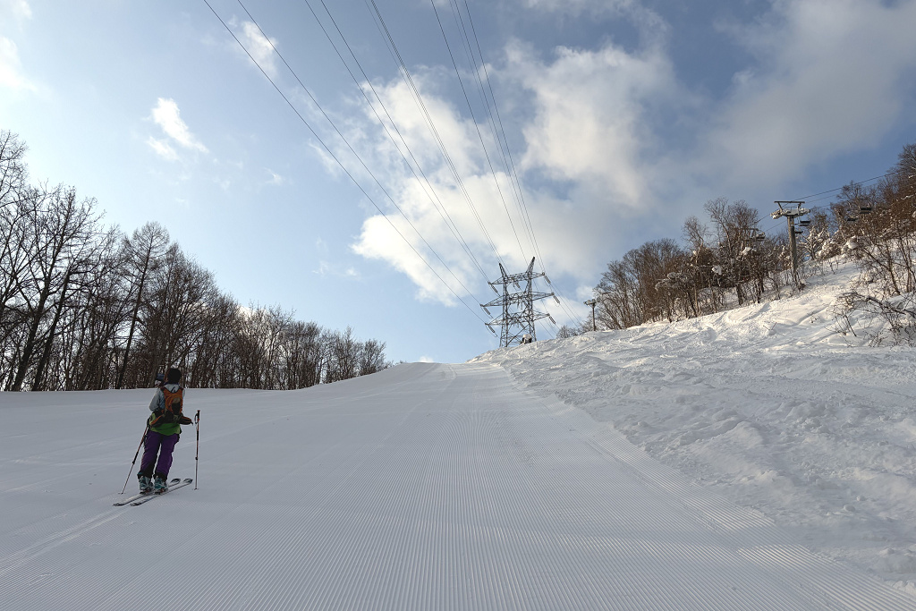 昨夜の雪が綺麗に圧雪されたオレンジコースから上ってみました