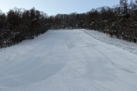 スラバンは圧雪されたフラットバーンの幅が広がりましたが、コブの名残で段差が潜んでいました