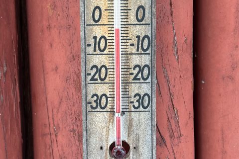かろうじてマイナスを示す温度計