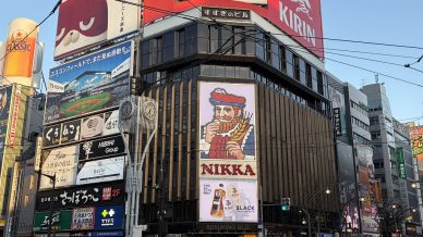 スキー学校検定担当のお疲れ様会でススキノへ新しくなって背景が白基調に変わった看板。これからもよろしく。