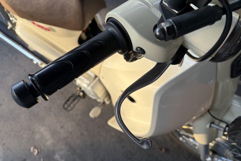 カブの始動 motorcycle 2026.04.18 冬の間室内で保管していたバッテリーを積み直し、空気圧をチェック 冬眠準備の時に転がしてしまいブレーキレバーを直角に曲げてしまったのを忘れていました 夕方なので明日の作業にしよう